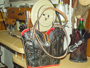 Our very unique and original western boot top wine bottle holders are made from vintage leather boots with a 1" inch stained round wooden bottom. Each holder is wrapped around the bottom with either leather or faux suede leather trim secured with decorative tacks and completed with a decorative center concho. The carrying straps are made from various high-end vintage leather belts or custom made. We will also use custom beaded handles or custom braided leather handles for an additional cost Pics Soon.